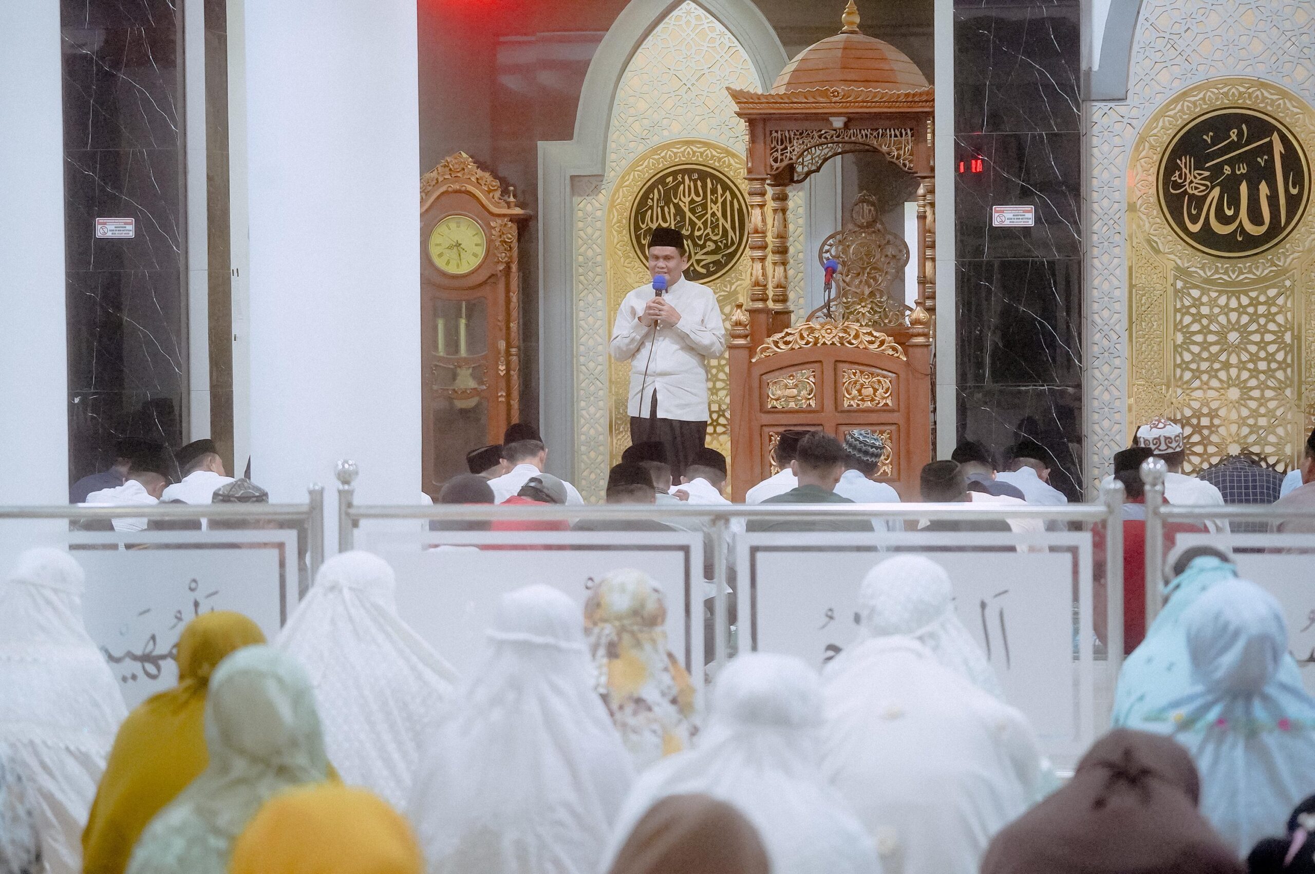 Bupati Barru mengawali sambutannya mengajak para jamaah untuk memanjatkan puji syukur karena Allah SWT masih mempertemukan kita dengan bulan suci Ramadhan 1445 H tahun ini.