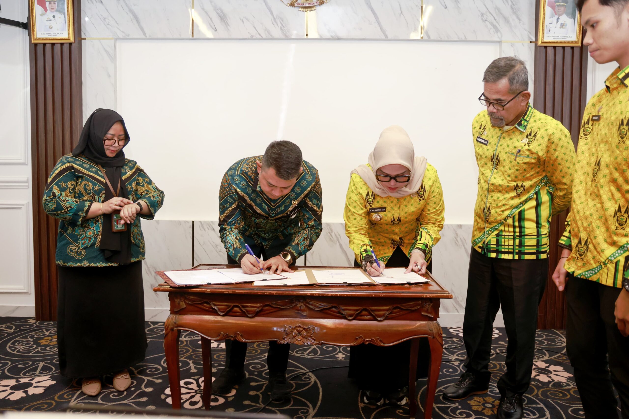 Penandatanganan Nota Kesepakatan oleh Bupati Barru Andi Ina Kartika Sari, S.H, M.Si. dan Ketua Pengadilan Negeri Barru, Ricco Imam Vimayzar, SH. M.H, turut dihadiri Pj. Sekda Barru, Staf Ahli Bupati, para Asisten, Pimpinan OPD, Wakil Ketua PN Barru, para Hakim dan Panitera, para Camat, serta Tim Koordinasi Kerja Sama Daerah.