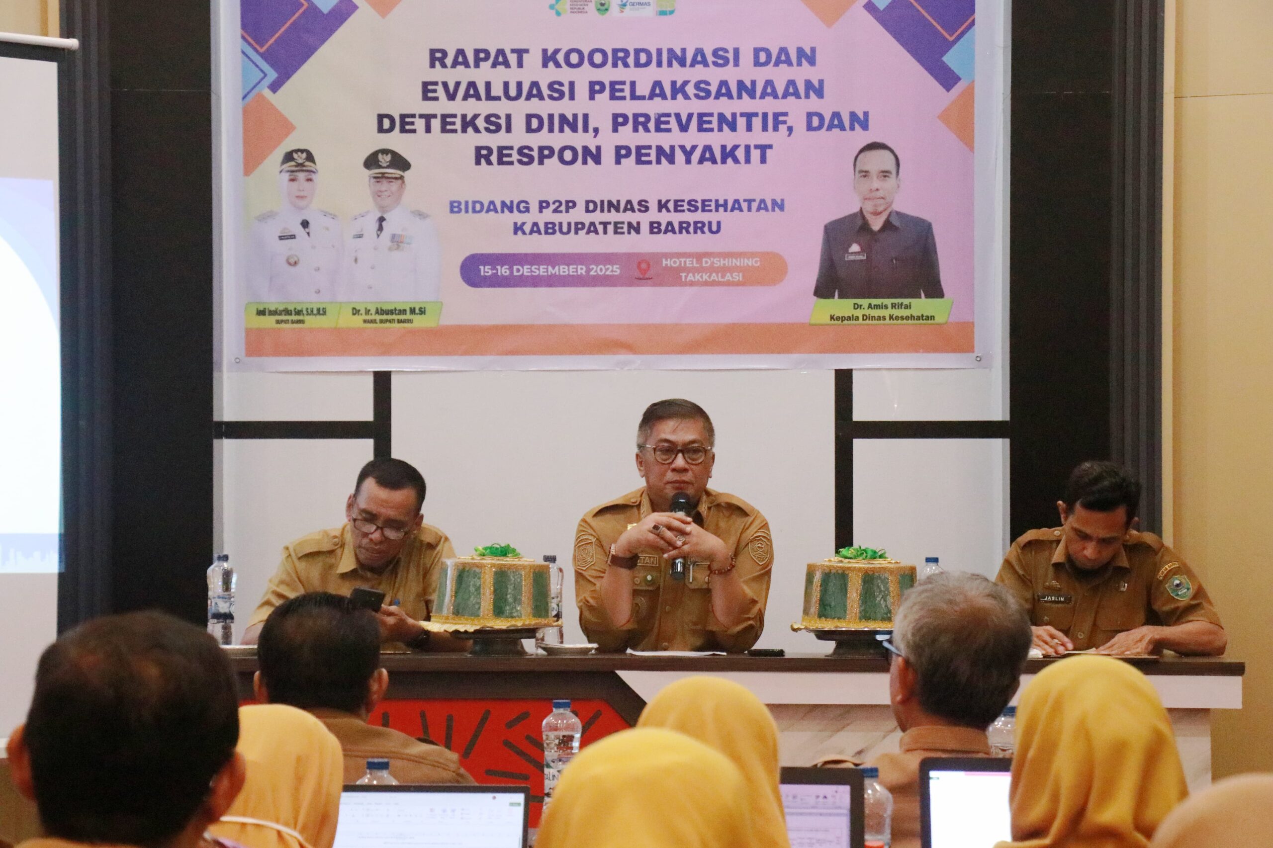 Barru, Menit7. Com – Wakil Bupati Barru, Dr. Ir. Abustan A. Bintang, M.Si menegaskan pentingnya penguatan deteksi dini, pencegahan, dan respon penyakit melalui kerja yang sistematis, kolaboratif, dan berkelanjutan. Penegasan itu disampaikan saat membuka Rapat Koordinasi dan Evaluasi Pelaksanaan Deteksi Dini, Preventif, dan Respon Penyakit tingkat Kabupaten Barru di D’Shining Hotel, Takkalasi, Kecamatan Balusu, Senin (15/12/2025).