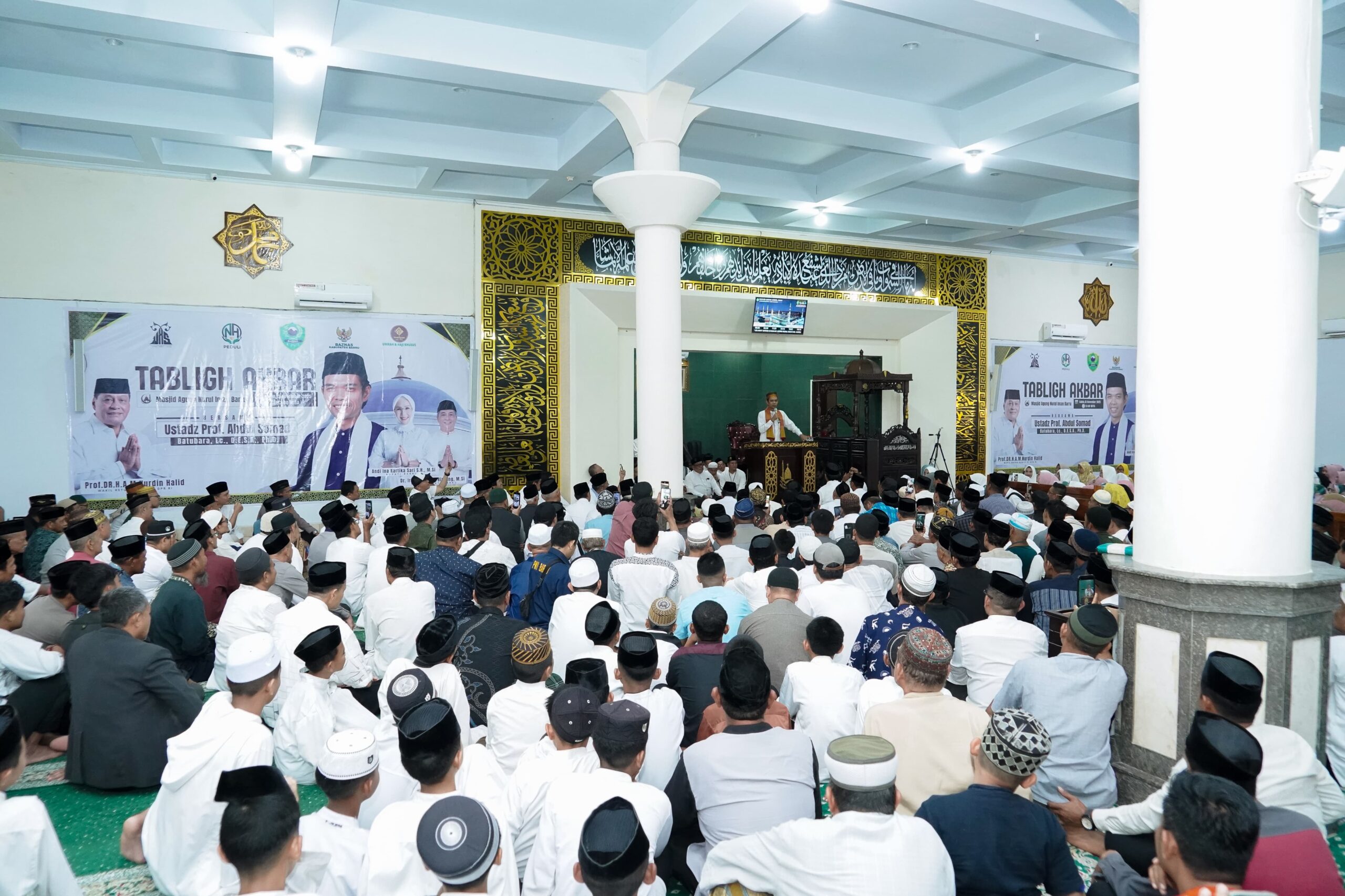 Barru, Menit7 . Com – Ribuan jamaah memadati Masjid Agung Nurul Iman Kabupaten Barru dalam gelaran Tabligh Akbar yang menghadirkan Prof. Dr. H. Abdul Somad Batubara, Lc., D.E.S.A., Ph.D. (Ustaz Abdul Somad) dan Wakil Ketua Komisi VI DPR RI, Prof. Dr. H. A. M. Nurdin Halid, pada Sabtu (15/11/2025) siang. Acara yang berlangsung khidmat ini diwarnai dengan tausiyah, doa bersama untuk kemajuan daerah, serta kejutan pemberian paket umroh.