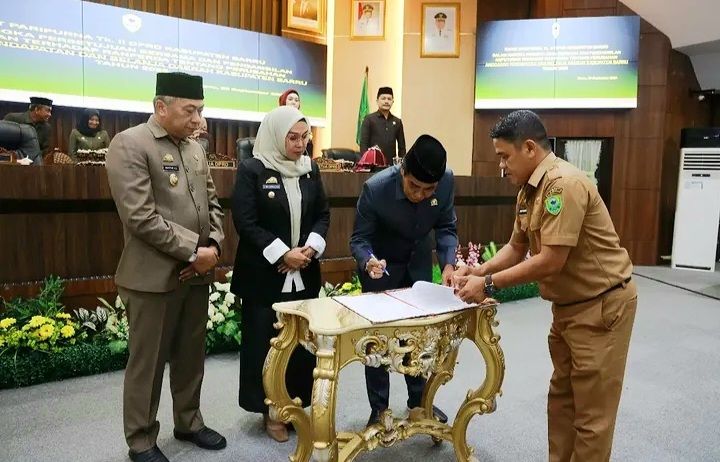 ​Keputusan bersama terhadap APBD Perubahan (APBD-P) ini ditandai dengan penandatanganan nota kesepakatan oleh Ketua DPRD Barru, Drs. H. Syamsuddin Muhiddin, M. Si, bersama Bupati Barru, A. Ina Kartika Sari, SH. M. Si, di Ruang Sidang DPRD Barru.