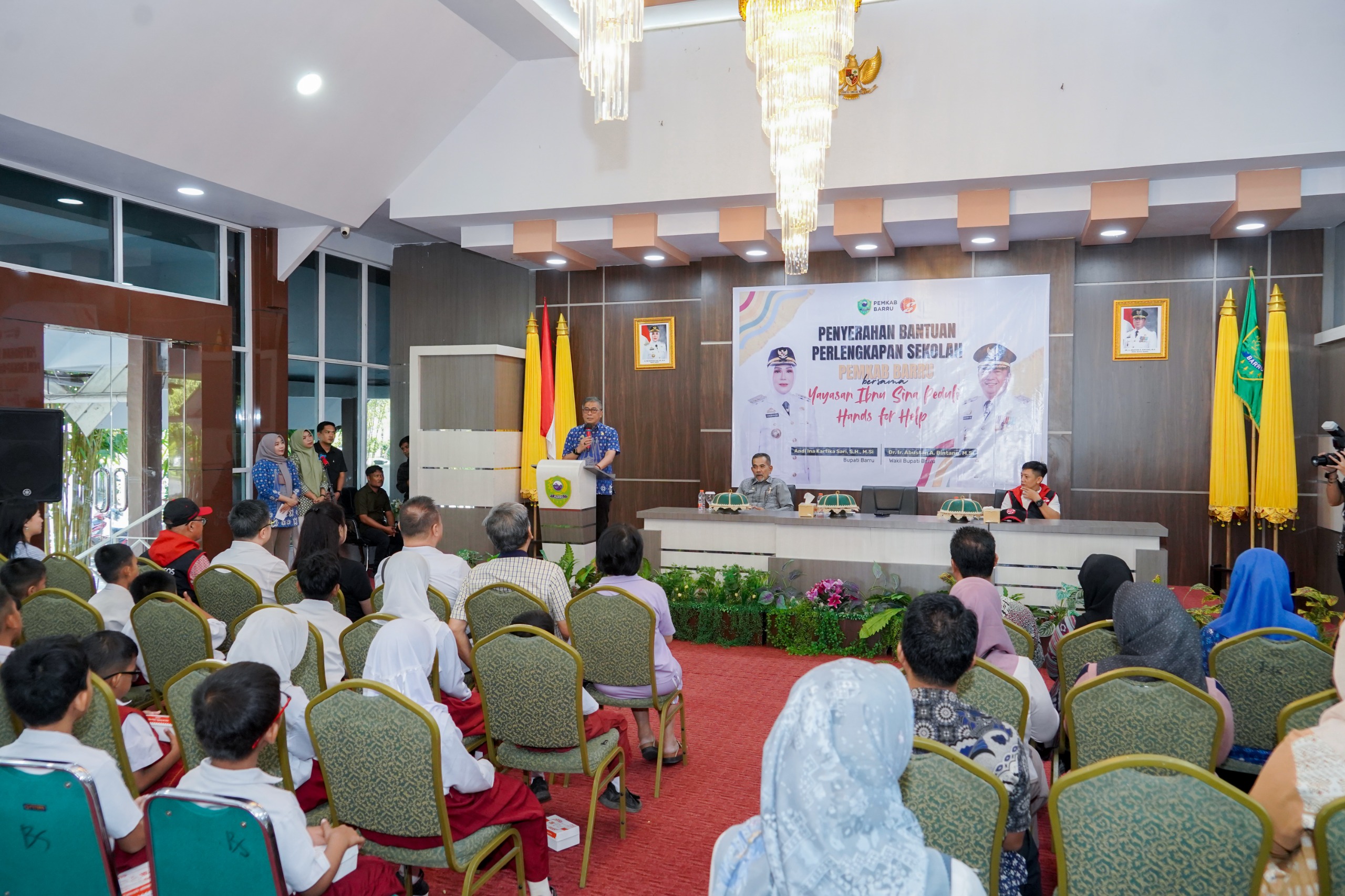 Kegiatan ini dihadiri Wakil Bupati Barru, Plh. Sekretaris Daerah, para Asisten Setda, sejumlah Kepala OPD lingkup Pemkab Barru, para kepala sekolah dan guru, serta perwakilan siswa penerima bantuan. Turut hadir pula perwakilan Yayasan Ibnu Sina Peduli bersama mitra dari luar daerah.